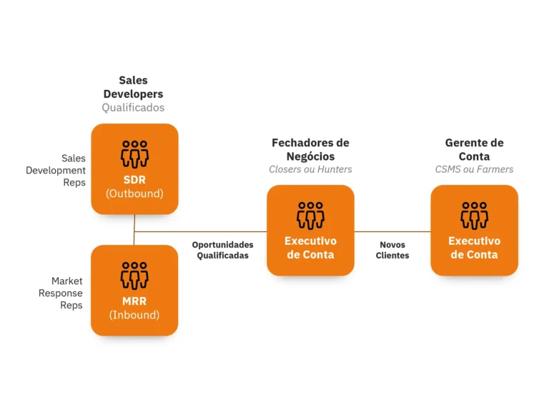 | Papéis bem definidos | Estrutura com SDR, MRR, Closer, CS e Marketing, com critérios claros e passagem de bastão eficiente. | Presente em alguns casos, mas sem Account Executive definido. |