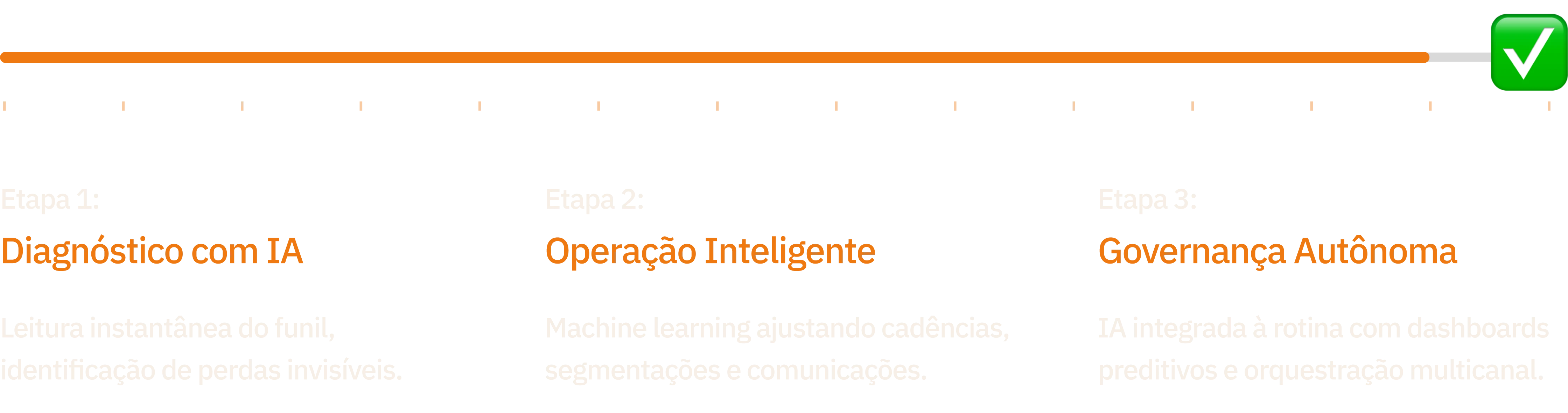 Em uma sessão de 40 minutos, nossa equipe mapeia o seu funil, identifica perdas invisíveis e estima o potencial de ROI da aplicação de IA na sua operação comercial.
